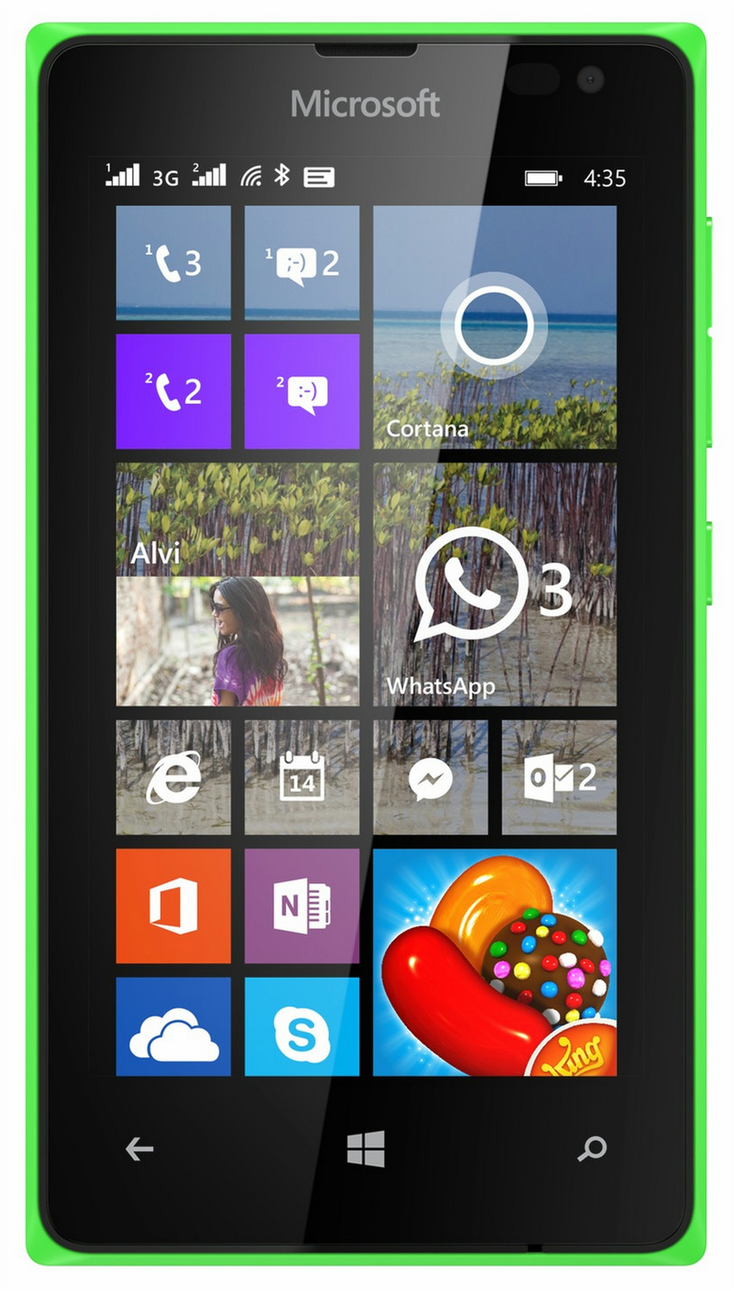 Microsoft Lumia 435. Bildschirmdiagonale: 10,2 cm (4 Zoll), Bildschirmauflösung: 800 x 480 Pixel, Display-Typ: LCD. Prozessor-Taktfrequenz: 1,2 GHz, Prozessorfamilie: Qualcomm Snapdragon. Interne Speicherkapazität: 8 GB, Kompatible Speicherkarten: MicroSD (TransFlash), MicroSDHC, MicroSDXC, Max. Speicherkartengröße: 128 GB. Auflösung Rückkamera: 2 MP, Auflösung Frontkamera: 0,3 MP. Sim Card Steckplätze: Single SIM, SIM-Kartentyp: MicroSIM, 2G-Standards: EDGE, GSM