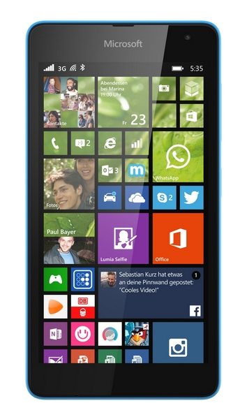 Microsoft Lumia 535. Bildschirmdiagonale: 12,7 cm (5 Zoll), Bildschirmauflösung: 960 x 540 Pixel, Display-Typ: IPS. Prozessor-Taktfrequenz: 1,2 GHz, Prozessorfamilie: Qualcomm Snapdragon. Internes RAM: 1 GB, Interne Speicherkapazität: 8 GB, Kompatible Speicherkarten: MicroSD (TransFlash). Auflösung Rückkamera: 5 MP, Auflösung Frontkamera: 5 MP, CCD-Sensorgröße: 25,4 / 4 mm (1 / 4 Zoll). Sim Card Steckplätze: Single SIM, SIM-Kartentyp: MicroSIM, 2G-Standards: EDGE, GSM