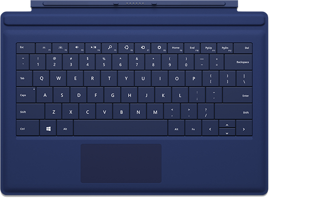 Das Surface Pro Type Cover ist in 5 Farben mit Tastaturhintergrundbeleuchtung erhältlich und bietet die Geschwindigkeit und Funktionen einer herkömmlichen Laptoptastatur.