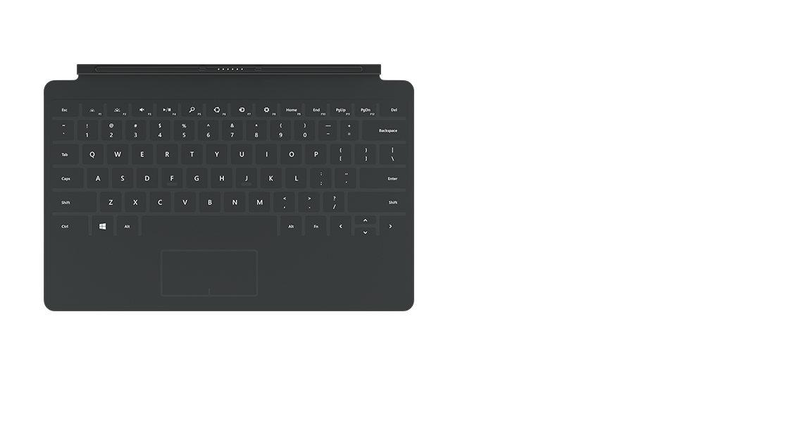 Das Touch Cover 2 ist die gleiche, völlig neuartige Tastatur, die auch als Schutzabdeckung fungiert – nur noch flacher und leichter. Die von hinten beleuchteten Tasten mit Näherungssensoren „erkennen“, wann Sie zu schreiben beginnen. Das Touch Cover 2 ist mit einer kompletten Reihe Funktionstasten (F1-F12), Windows-Tastenkombinationen, Medien-Steuerelementen und einem Touchpad ausgestattet. Das gibt Ihnen vielfältige Möglichkeiten, auf dem Surface zu navigieren.