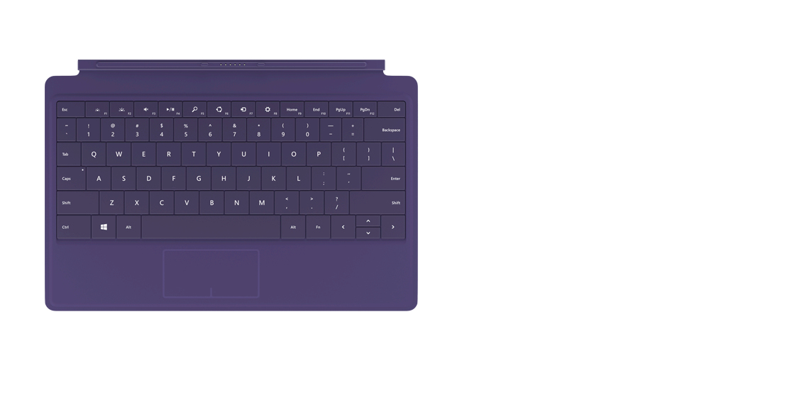 Microsoft Type Cover 2. Produktfarbe: Violett, Schutzfunktion: Kratzresistent, Tastatur Formfaktor: Mini. Markenkompatibilität: Microsoft, Kompatibilität: Surface, Surface 2, Surface Pro, Surface Pro 2, Tastaturaufbau: QWERTY. Übertragungstechnik: Docking, Geräteschnittstelle: Microsoft Cover port. Breite: 279 mm, Tiefe: 187 mm, Höhe: 5,4 mm