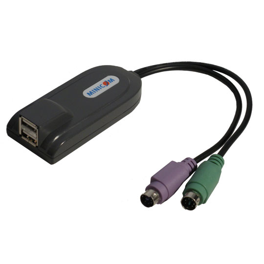 Minicom Advanced Systems PS/2 to USB. Anschluss 1: 2 x USB - A, Anschluss 2: 2 x 6 p. mini DIN, Geschlecht: Männlich/weiblich. Produktfarbe: Schwarz, Material: Kunststoff. Kompatible Betriebssysteme: All, Kompatibilität: KVM. Breite: 30 mm, Länge: 9 cm. Verpackungsbreite: 13,5 cm, Verpackungslänge: 21 cm