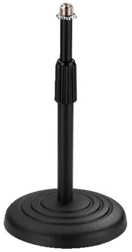 Monacor MS-22. Produkttyp: Desktop microphone stand, Sockel: Round base, Produktfarbe: Schwarz. Breite: 150 mm, Tiefe: 150 mm, Höhe (min): 23 cm