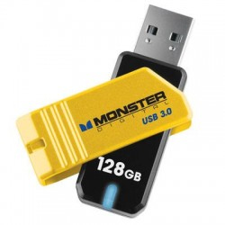 Monster Digital Coppa 3.0 128GB. Kapazität: 128 GB, USB-Version: USB 3.0 (3.1 Gen 1), USB-Anschluss: Type-A. Formfaktor: Drehring, Produktfarbe: Schwarz, Gelb