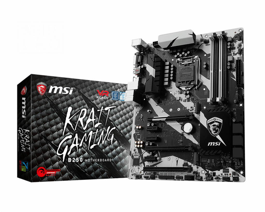 MSI B250 KRAIT GAMING. Unterstützte Arbeitsspeicher: DDR4-SDRAM, Arbeitsspeicher Typ: DIMM, Unterstützte Arbeitsspeichergeschwindigkeit: 2133,2400 MHz. Prozessorfamilie: Intel, Kompatible Prozessoren: Core i3,Core i5,Core i7, Prozessorsockel: LGA 1151 (Socket H4). Unterstützte Speicherlaufwerk-Schnittstellen: M.2, PCI Express 3.0, SATA, Serial ATA II, Serial ATA III. LAN-Controller: Intel I219-V, Ethernet Schnittstellen Typ: Gigabit Ethernet. Komponente für: PC, Motherboard Chipsatz Familie: Intel, Motherboard Chipsatz: Intel B250