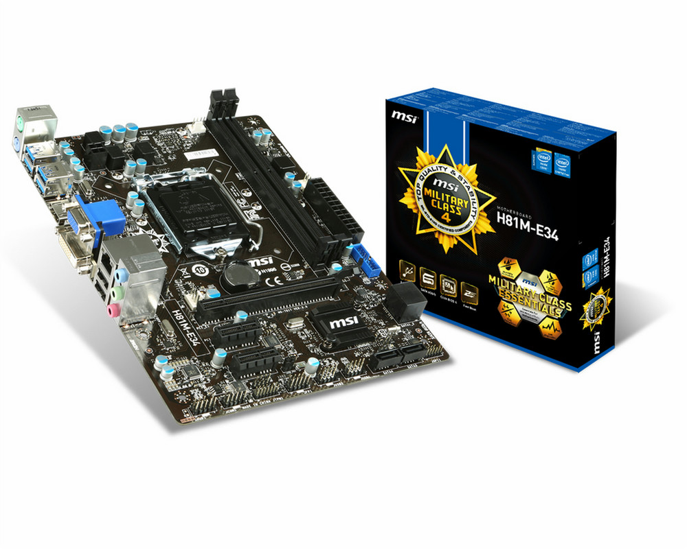 Intel LGA 1150, Intel H81 Express, 2 x DDR3 DIMMs 1066/1333/1600 MHz max 16GB, SATAIII/SATAII, Realtek ALC887, Gigabit Ethernet, Micro-ATX