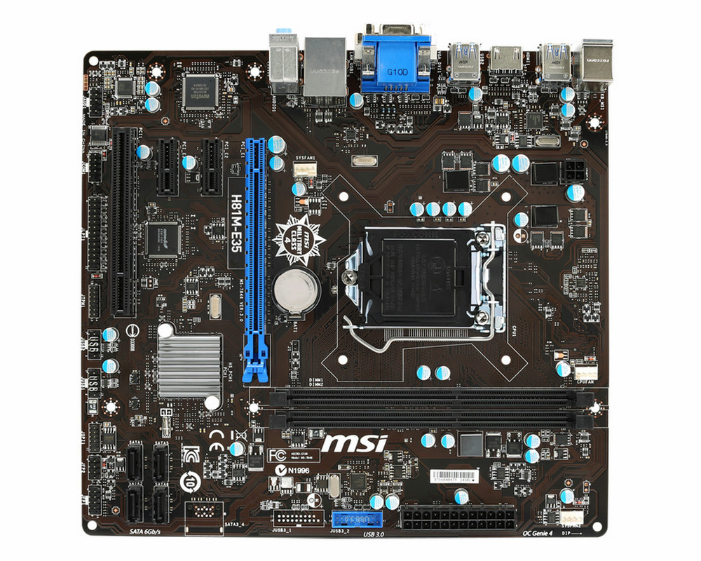 H81M-E35, LGA1150, H81 Express, 2x DIMM, Realtek ALC887, Gigabit Ethernet, SATAIII/II, USB 3.0, D-Sub, DVI-D, HDMI, Micro-ATX