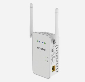 Netgear AC750 WiFi Range Extender (EX6100). Verkabelungstechnologie: 10/100/1000Base-T(X), WLAN-Standards: 802.11a, 802.11ac, 802.11b, 802.11g, 802.11n, Wi-Fi Datenrate (max): 450 Mbit/s. Breite: 74 mm, Tiefe: 38 mm, Höhe: 122 mm. Produktfarbe: Weiß
