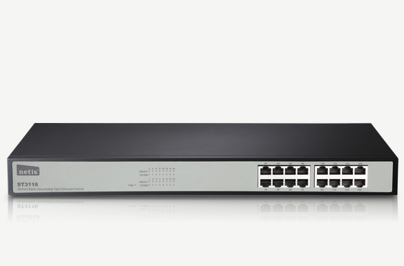 Netis System ST3116. Switch-Typ: Unmanaged network switch. Basic Switching RJ-45 Ethernet Ports-Typ: Fast Ethernet (10/100), Konsolen-Port: RJ-45, Kupfer Ethernet Verkabelungstechnologie: 1000BASE-T,100BASE-T,10BASE-T. Netzstandard: IEEE 802.3,IEEE 802.3az,IEEE 802.3u,IEEE 802.3x. MAC-Adressentabelle: 8000 Eintragungen, Routing-/Switching-Kapazität: 3,2 Gbit/s, Durchgang: 1,25 Mpps. Produktfarbe: Schwarz, Grau, Zertifizierung: FCC, CE, BSMI