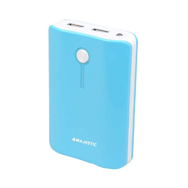 New Majestic 356060. Produktfarbe: Blau, Aufladekompatibilität: Universal. Batterietechnologie: Lithium, Batteriekapazität: 6000 mAh, Aufladequelle: USB. LED-Anzeigen: Ladend. Typ des USB-Eingangsanschlusses: Micro-USB. Breite: 65,4 mm, Tiefe: 25,5 mm, Höhe: 95,5 mm