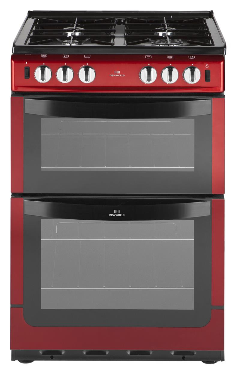 New World NW551GTC. Produkttyp: Freistehend, Produktfarbe: Rot, Kontrolltyp: Rotation. Kochfeldtyp: Gas hob, Brenner/Kochzone 1 Typ: Klein, Brenner/Kochzone 2 Typ: Medium. Stromquelle Ofen: Erdgas, Anzahl der Regale: 2 Regale, Bruttorauminhalt Ofen 2: 48 l. AC Eingangsspannung: 220 - 240 V, AC Eingangsfrequenz: 50 Hz. Breite: 550 mm, Tiefe: 600 mm, Höhe: 900 mm