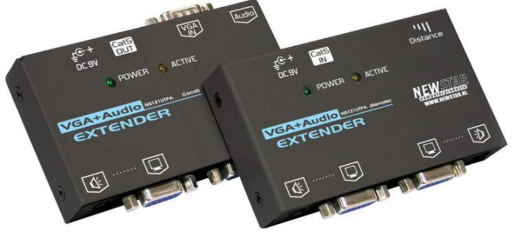 Der Extender NS121UTPA ist ein VGA Video Extender over UTP, mit dem Sie den Abstand zwischen dem PC und dem Bildschirm bis zu 130 Metern vergrößern können. Dieser Extender kann gleichzeitig auch für Audiosignale verwendet werden