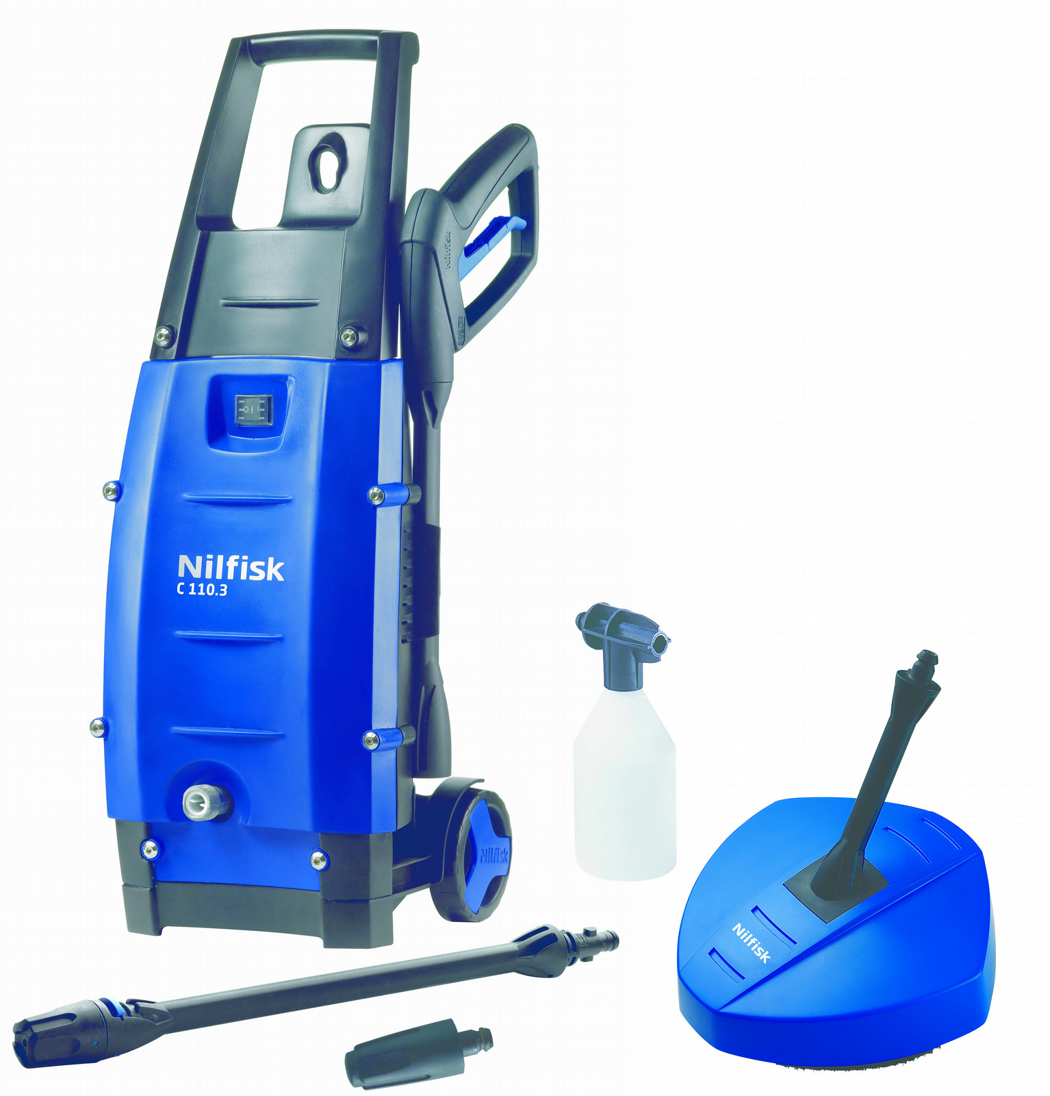 Nilfisk C 110.3-5 PC X-TRA. Formfaktor: Kompakt, Kabellänge: 5 m, Produktfarbe: Schwarz, Blau. Maximum Fließrate: 440 l/h, Betriebsdruck (max.): 110 bar, Max. Temperatur des Inputwassers: 40 °C. Stromverbrauch (typisch): 1400 W, AC Eingangsspannung: 230 V. Gewicht: 6,6 kg, Breite: 240 mm, Tiefe: 240 mm
