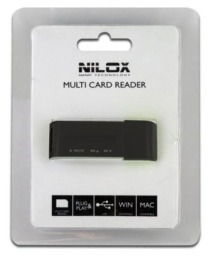 Nilox 10NXCRMI00001. Kompatible Speicherkarten: Speicherstick (MS), microSD (TransFlash), miniSDHC, MMC, MS Duo, MS Micro (M2), MS PRO, MS PRO Duo, . Schnittstelle: USB 2.0. Unterstützte Windows-Betriebssysteme: Windows 2000, Windows 7 Home Basic, Windows 7 Home Premium, Windows 7 Professional, Windows 7 Starte, Unterstützt Mac-Betriebssysteme: Mac OS X 10.1 Puma. Produktfarbe: Schwarz, Weiß. Abmessungen (BxTxH): 60 x 20 x 10 mm