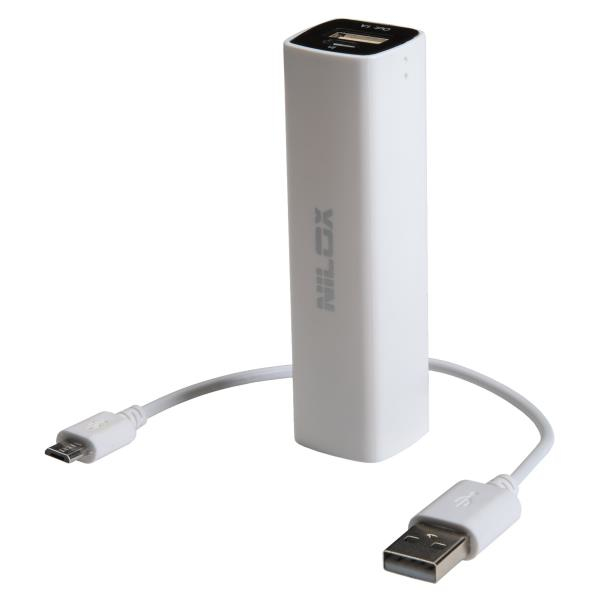 Nilox NXPB2000W. Produktfarbe: Weiß, Gehäusematerial: Kunststoff, Aufladekompatibilität: Smartphone. Batteriekapazität: 2000 mAh, Aufladequelle: USB, Batterie Aufladezeit (USB): 2 h. Typ des USB-Eingangsanschlusses: Micro-USB. Breite: 25 mm, Tiefe: 25 mm, Höhe: 90 mm. Mitgelieferte Kabel: USB
