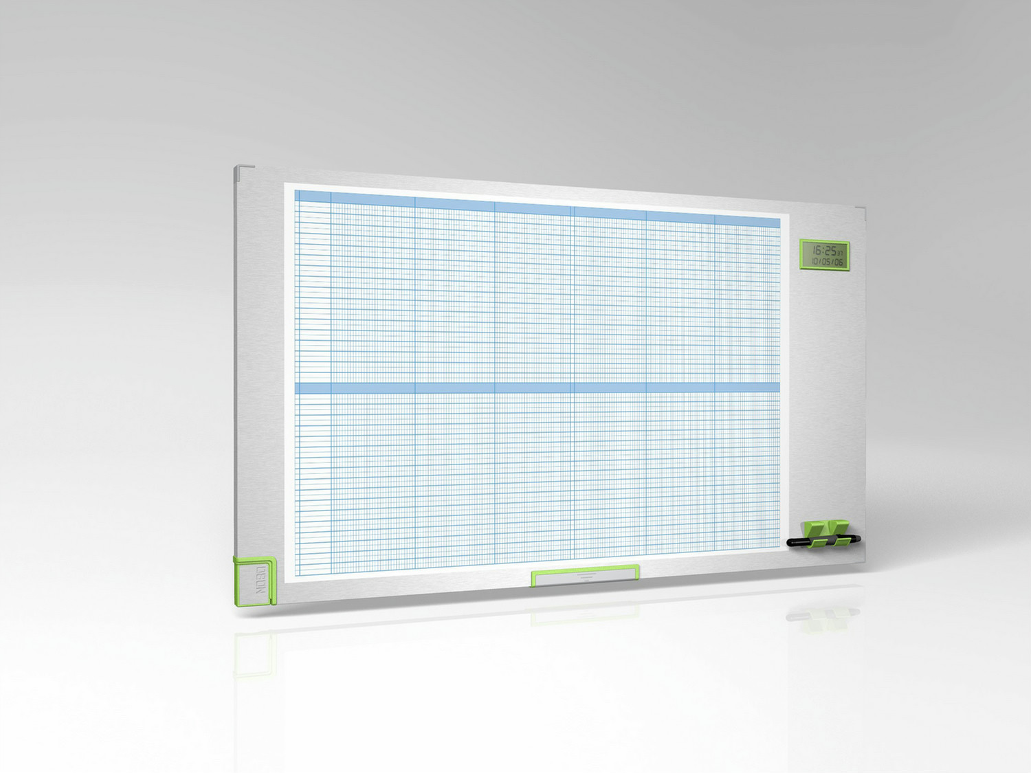 - Magnethaftende, trocken abwischbare Oberfläche mit Planungsraster