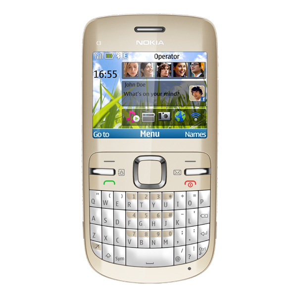 Nokia C3-00. Bildschirmauflösung: 320 x 240 Pixel, Anzahl der Farben des Displays: 262144 Farben. Weißabgleich: Auto, Fotoeffekte: Negativ Film, Sepia, Auflösung Rückkamera: 1600 x 1200 Pixel. Sim Card Steckplätze: Single SIM, 2G-Standards: GSM, Bluetooth-Version: 2.1+EDR. Kopfhörer-Konnektivität: 3,5 mm. Formfaktor: Balken, Produktfarbe: Gold, Weiß