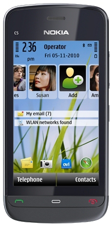 Nokia C5-03. Bildschirmauflösung: 640 x 360 Pixel, Anzahl der Farben des Displays: 16,78 Millionen Farben. Weißabgleich: Auto, Wolkig, Tageslicht, Fluorisierend, Glühend, Fotoeffekte: Negativ Film, Sepia, lebendig, Video-Capture Auflösung: 640 x 480 Pixel. Sim Card Steckplätze: Single SIM, 2G-Standards: EDGE, GPRS, 3G-Standards: CDMA, HSDPA, HSUPA, WCDMA. Kopfhörer-Konnektivität: 3,5 mm. Vorinstalliertes Betriebssystem: Symbian OS, Version des Betriebsystems: S60