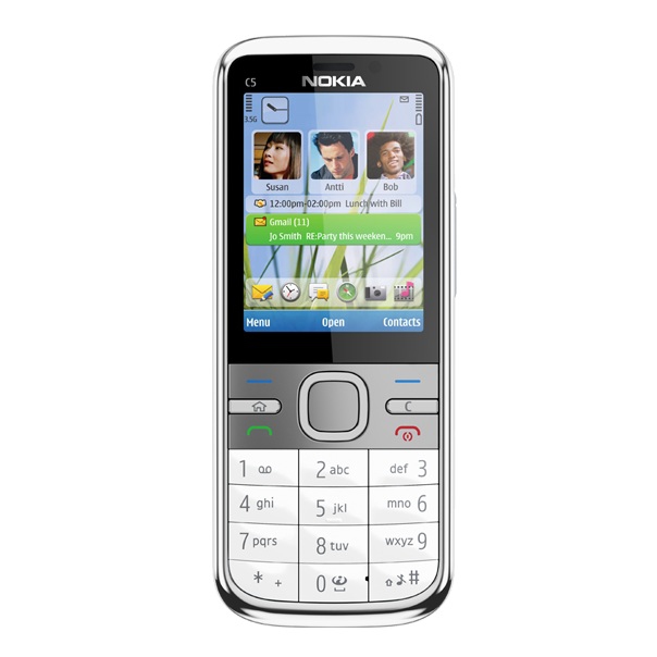 Nokia C5. Bildschirmdiagonale: 5,59 cm (2.2 Zoll), Bildschirmauflösung: 320 x 240 Pixel, Display-Typ: TFT. Max. Speicherkartengröße: 16 GB, RAM-Speicher: 50 MB. Digitaler Zoom: 4x, Weißabgleich: Auto, Wolkig, Tageslicht, Fluorisierend, Glühend, Fotoeffekte: Negativ Film, Sepia, lebendig. Sim Card Steckplätze: Single SIM, 2G-Standards: GPRS,GSM, 3G-Standards: HSDPA,HSUPA,WCDMA. Kopfhörer-Konnektivität: 3,5 mm