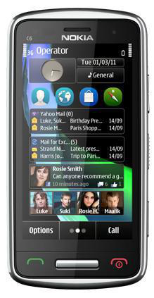 Nokia C6-01. Bildschirmauflösung: 640 x 360 Pixel, Display-Typ: AMOLED, Anzahl der Farben des Displays: 16,78 Millionen Farben. Videoaufnahme-Modi: 720p, Flash-Typ: LED. Sim Card Steckplätze: Single SIM, 2G-Standards: EDGE, GPRS, GSM, 3G-Standards: HSDPA, HSUPA. Kopfhörer-Konnektivität: 3,5 mm. Vorinstalliertes Betriebssystem: Symbian OS
