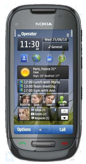 Nokia C7-00. Bildschirmdiagonale: 8,89 cm (3.5 Zoll), Bildschirmauflösung: 640 x 360 Pixel, Display-Typ: AMOLED. Max. Speicherkartengröße: 32 GB, RAM-Speicher: 8192 MB. Digitaler Zoom: 2x. Sim Card Steckplätze: Single SIM, 2G-Standards: EDGE,GPRS,GSM, 3G-Standards: HSDPA,HSUPA,WCDMA. Formfaktor: Balken, Produktfarbe: Schwarz