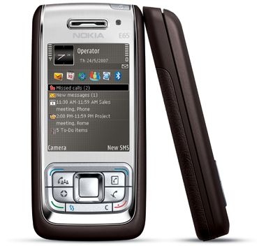 Nokia E65 BNL Mocca/silver. Bildschirmauflösung: 240 x 320 Pixel, Anzahl der Farben des Displays: 16,78 Millionen Farben. RAM-Speicher: 50 MB, Flash-Speicher: 4000 MB. Prozessor-Taktfrequenz: 220 MHz. Gebündelte Software: Nokia Mini Map. Netzwerkfunktionen: GSM, EDGE, GPRS, WLAN, Arbeitsfrequenz: 850, 900, 1800, 1900, 2100