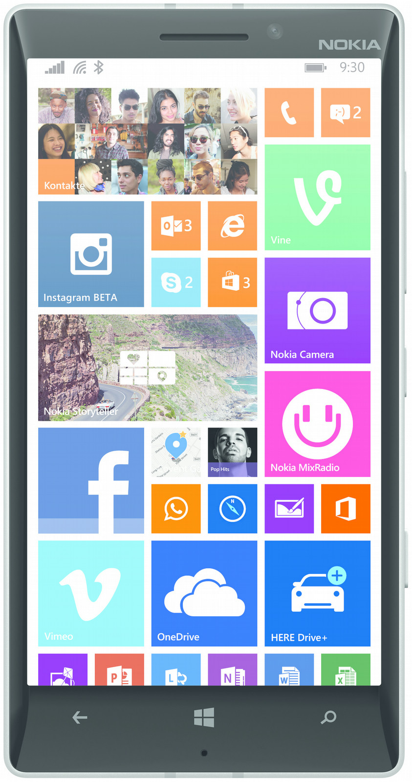 Nokia 930, Lumia. Bildschirmdiagonale: 12,7 cm (5 Zoll), Bildschirmauflösung: 1920 x 1080 Pixel, Display-Typ: OLED. Prozessor-Taktfrequenz: 2,2 GHz, Prozessorfamilie: Qualcomm Snapdragon. Internes RAM: 2 GB, Interne Speicherkapazität: 32 GB, Kompatible Speicherkarten: Nicht unterstützt. Auflösung Rückkamera: 20 MP, Auflösung Frontkamera: 1,2 MP, CCD-Sensorgröße: 25,4 / 2,5 mm (1 / 2.5 Zoll). Sim Card Steckplätze: Single SIM, SIM-Kartentyp: NanoSIM, 2G-Standards: EDGE, GPRS, GSM