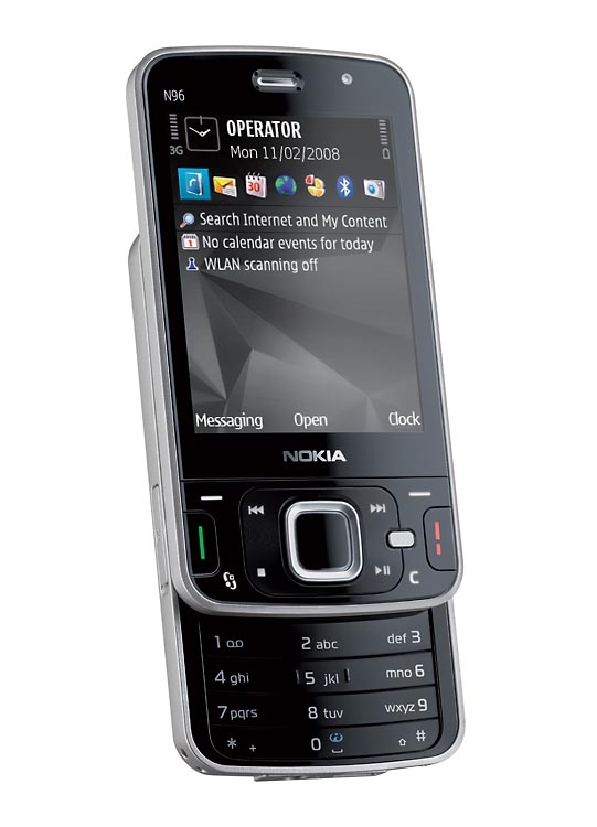 Nokia N96. Bildschirmdiagonale: 7,11 cm (2.8 Zoll), Bildschirmauflösung: 240 x 320 Pixel, Display-Typ: TFT. RAM-Speicher: 16384 MB. Auflösung Rückkamera: 2592 x 1944 Pixel. 2G-Standards: EDGE,GPRS, Datennetzwerk: 3G,wcdma, Bluetooth-Version: 2.0+EDR. Kopfhörer-Konnektivität: 3,5 mm