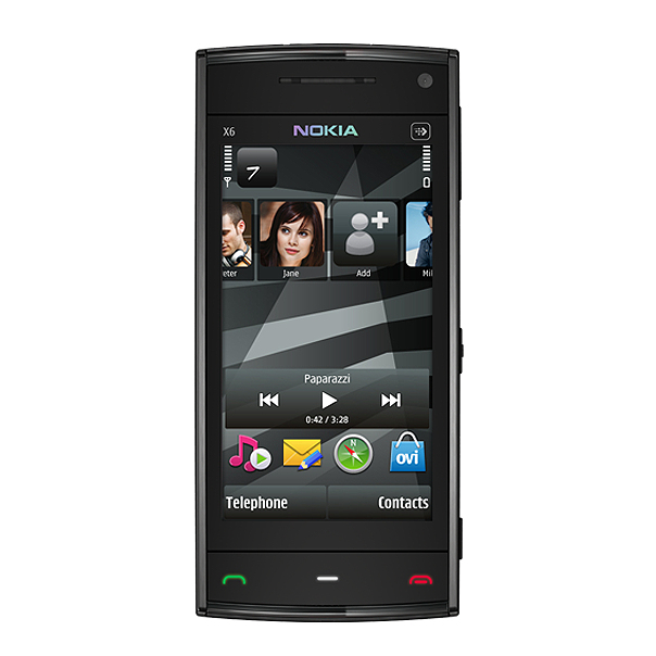 Nokia X6. Bildschirmauflösung: 640 x 360 Pixel, Anzahl der Farben des Displays: 16,78 Millionen Farben, Seitenverhältnis: 16:9. Weißabgleich: Auto, Tageslicht, Fluorisierend, Glühend, Fotoeffekte: Negativ Film, Neutral, Sepia, lebendig, Flash-Typ: LED. Sim Card Steckplätze: Single SIM, 2G-Standards: EDGE, GPRS, GSM, 3G-Standards: WCDMA. Kopfhörer-Konnektivität: 3,5 mm. Vorinstalliertes Betriebssystem: Symbian OS, Version des Betriebsystems: Series 60
