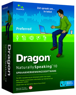 Nuance Dragon NaturallySpeaking Preferred 10.0, Upgrade NL, Dragon NaturallySpeaking. Plattform: PC, Unterstützte Medientypen: DVD, Unterstützte Sprachen: Niederländisch. Minimum Prozessor: Microsoft Internet Explorer 6+, Kompatible Betriebssysteme: Windows XP SP2+/2000 SP4+/Vista/Vista SP1, Min. benötigter Festplattenplatz: 1024 MB