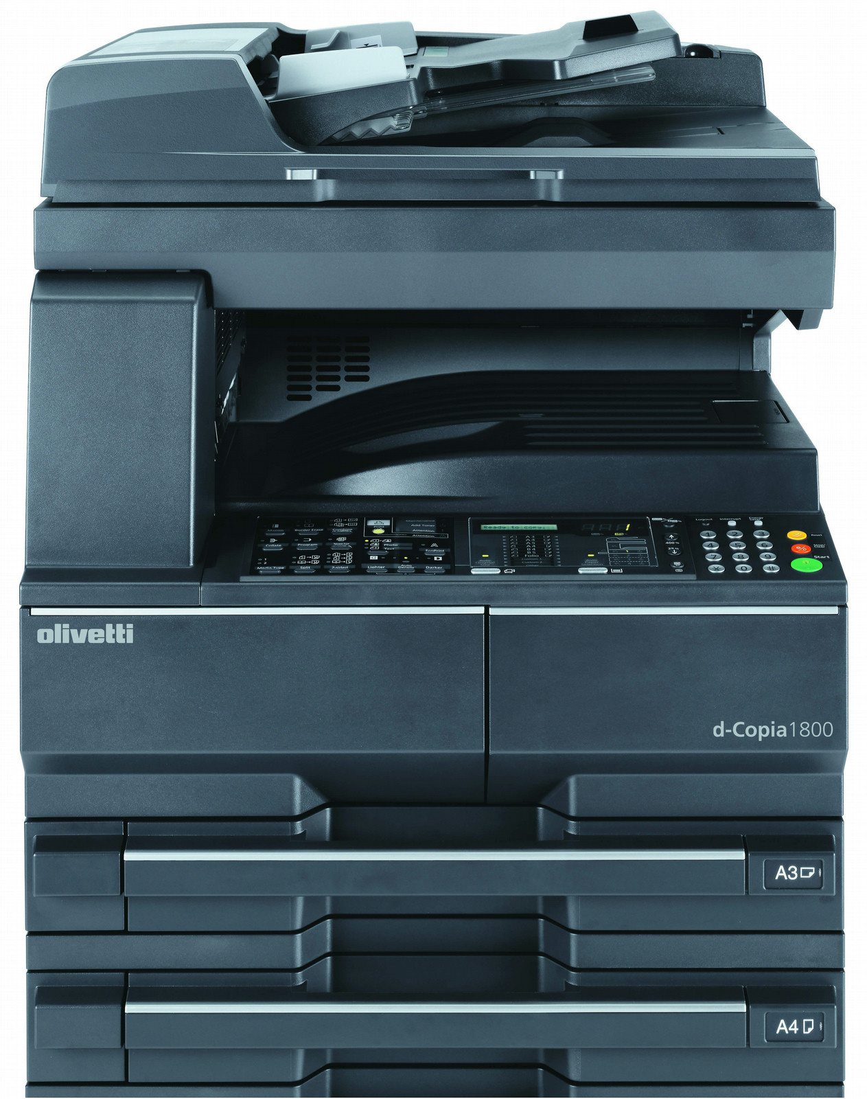 Olivetti d-Copia 1800. Drucktechnologie: Laser, Kopieren: Mono copying, Scannen: Mono scanning. Druckgeschwindigkeit (Schwarz, normale Qualität, A4/US Letter): 18 Seiten pro Minute, Maximale Auflösung: 1800 x 1800 DPI, Ausgabe der 1. Seite (schwarz, normal): 17,2 s. Max. Auflösung: 600 x 600 DPI, Dauer bis erste Kopie (schwarz,normal): 5,7 s. Kapazität der Papiereingabe (Standard): 100 Blätter, Kapazität der Papiereingabe (maximal): 300 Blätter. Kapazität der Papierausgabe (Standard): 250 Blätter