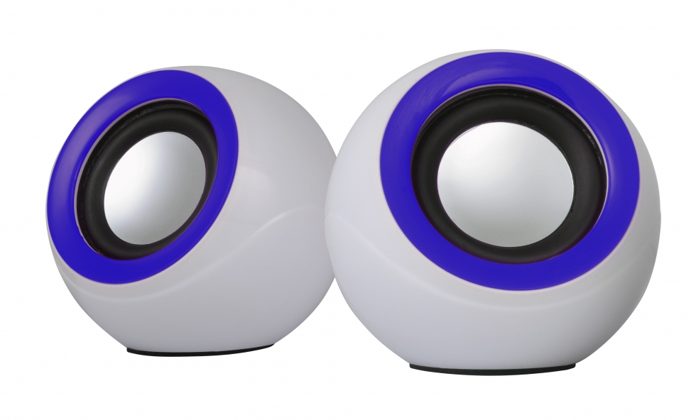 Omega OG116BWB. Audio Kanäle: 2.0 Kanäle. RMS-Leistung: 5 W, Musik Energie: 100 W. Übertragungstechnik: Verkabelt, Schnittstelle: USB. Produkttyp: Stereo portable speaker, Produktfarbe: Blau, Weiß, Design: Sphärisch. Energiequelle: USB