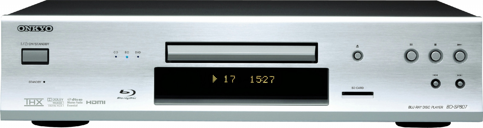 ONKYO BD-SP807. Unterstützte Medien: BD-ROM,DVD-R DL. Audio Kanäle: 7.1 Kanäle. Unterstützte Audioformate: AAC,MP3,WAV,WMA, Wiedergabeformate: AVCHD*, DivX HD, JPEG Formats. HDMI-Version: 1.3a. Gewicht: 5 kg