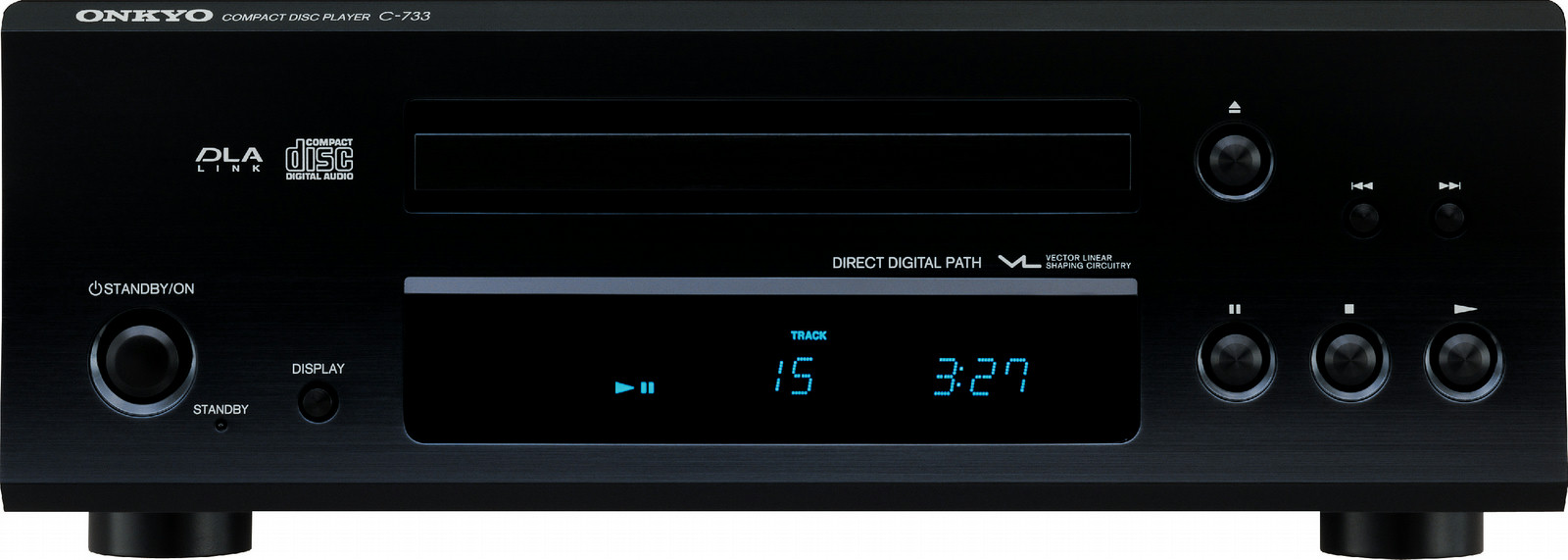 ONKYO C-733. Audio D/A Konverter: 192 kHz/24-Bit, Signal-zu-Geräusche Verhältnis (SNR): 96 dB, THD, totalklirren: 0,003%. Audioausgang: Analog. Stromverbrauch (typisch): 14,5 W, Energiebedarf: AC 230-240 V, 50 Hz, Stromverbrauch (Standby): 1 W. Gewicht: 4,5 kg. Abmessungen (BxTxH): 275 x 103 x 304 mm