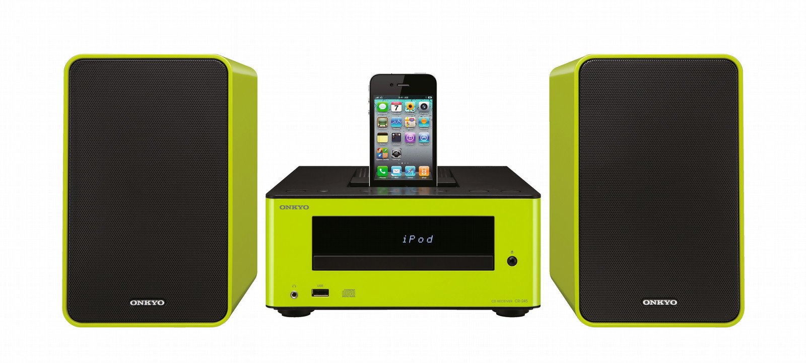 ONKYO CS-245. Typ: Home audio mini system, Produktfarbe: Grün, Zahl der Disks: 1 Disks. RMS-Leistung: 30 W, Lautsprechertyp: 2-Wege, Durchmesser Woofer: 10 cm. Unterstützte Bänder: FM, Digitales UKW-Radio: 87,5 - 108 MHz. Apple-Docking-Kompatibilität: iPhone,iPod. Unterstützte Audioformate: MP3, Unterstützte Medien: CD,CD-R,CD-RW, Playback Disk-Formate: CD-Audio