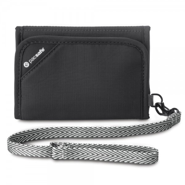 Pacsafe RFIDsafe V125. Material: Nylon, Polyester, Produktfarbe: Schwarz, Brieftaschen-Stil: Hand. Breite: 90 mm, Tiefe: 25 mm, Höhe: 135 mm