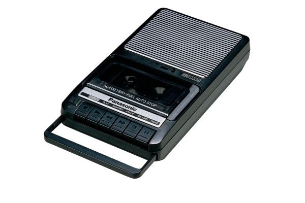 Cassetten-Recorder für Audio-Cassetten, robustes Gehäuse, integrierter Lautsprecher.