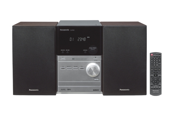 Panasonic SC-PM5EG-S. Typ: Home audio micro system. RMS-Leistung: 20 W, THD, totalklirren: 10%. Unterstützte Bänder: AM,FM, Digitales UKW-Radio: 87,50 - 108,00 MHz, AM-Bandbereich: 522 - 1629 kHz. Gewicht: 2,1 kg. Lautsprecherbreite: 13,9 cm, Lautsprechertiefe: 13,6 cm, Lautsprecherhöhe: 22,6 cm