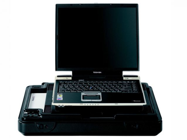 - Haltegurt in der Oberschale zum Fixieren des Notebooks im geschlossenen Zustand