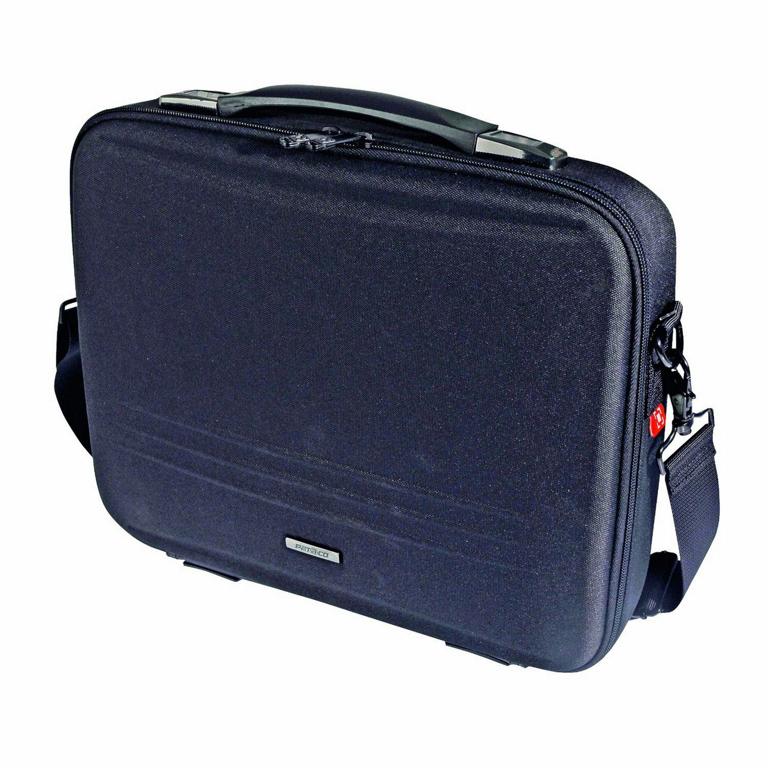Elegante Business Notebooktasche im Frontload Design mit ergonomischem Traggriff und Schulterriemen. Strapazierfähige Oberfläche aus 600D Polyester und stoßdämpfende EVA - Hartschale sowie Metallrahmen.