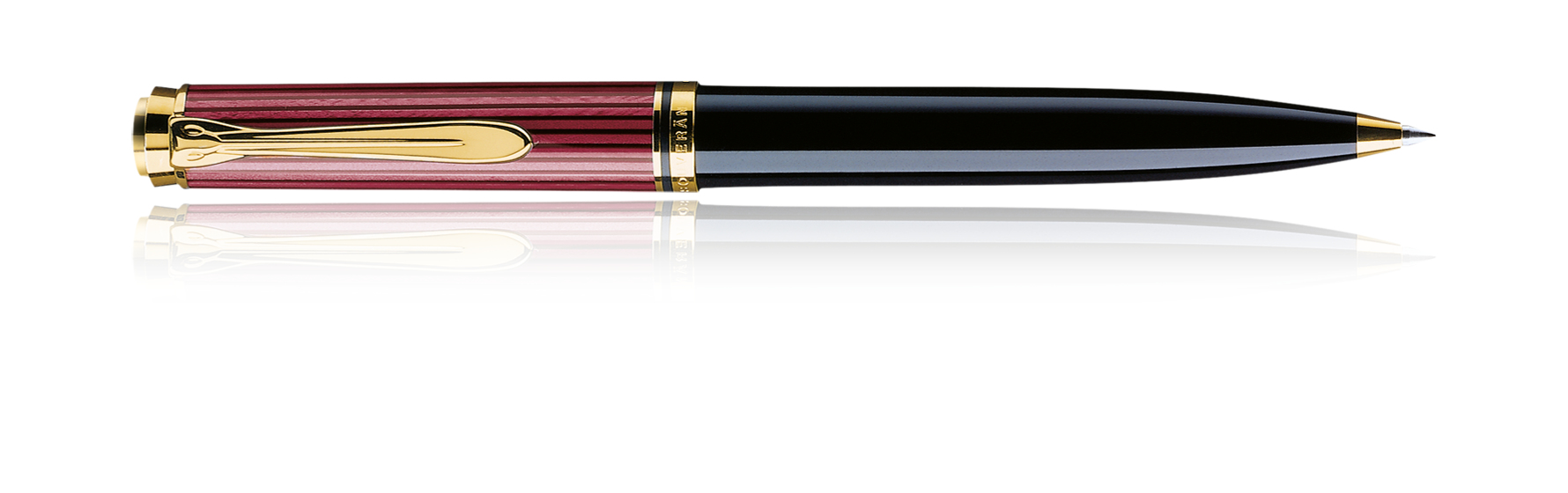 Kugelschreiber mit einem Gehäuse aus diamantbearbeitetem Edelharz und 24 Karat vergoldeten Beschlägen. Der Souverän Kugelschreiber verfügt über eine auswechselbare Großraummine 337. Modelle K800 und K600 mit Drehmechanik, Modell K400 mit Druckmechanismus