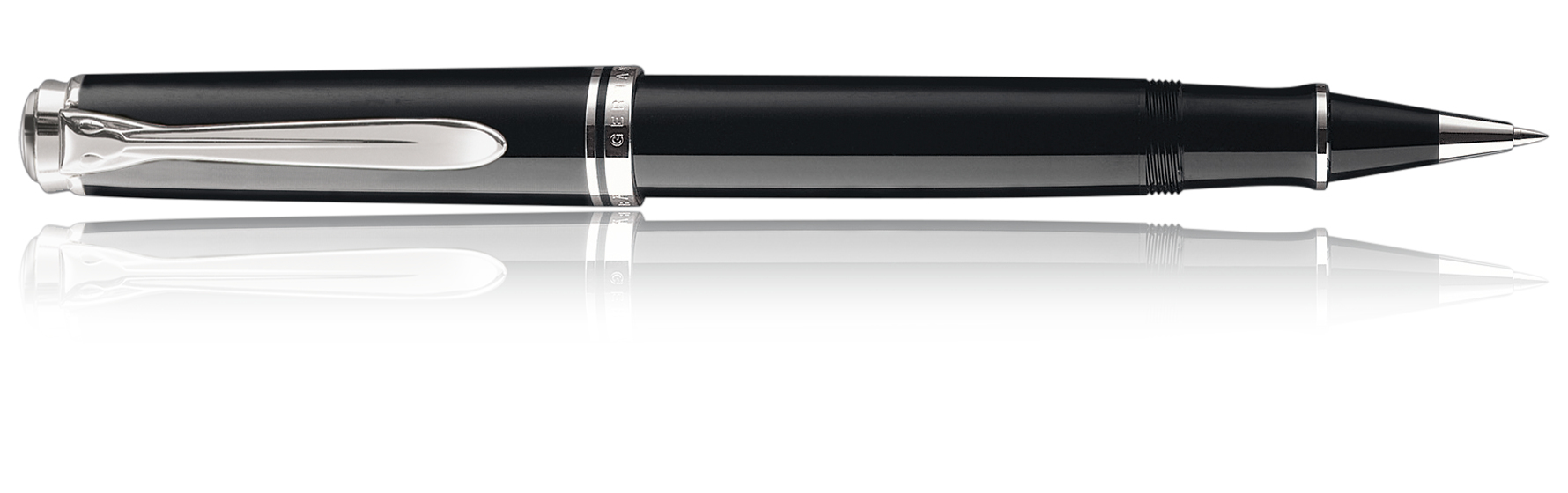 Tintenroller mit hochwertig palladinierten Beschlägen und einem aufwändig gefertigten Edelharz-Korpus. Der Souverän Tintenroller ist mit einer Hochleistungs-Tintenmine 338 ausgestattet.