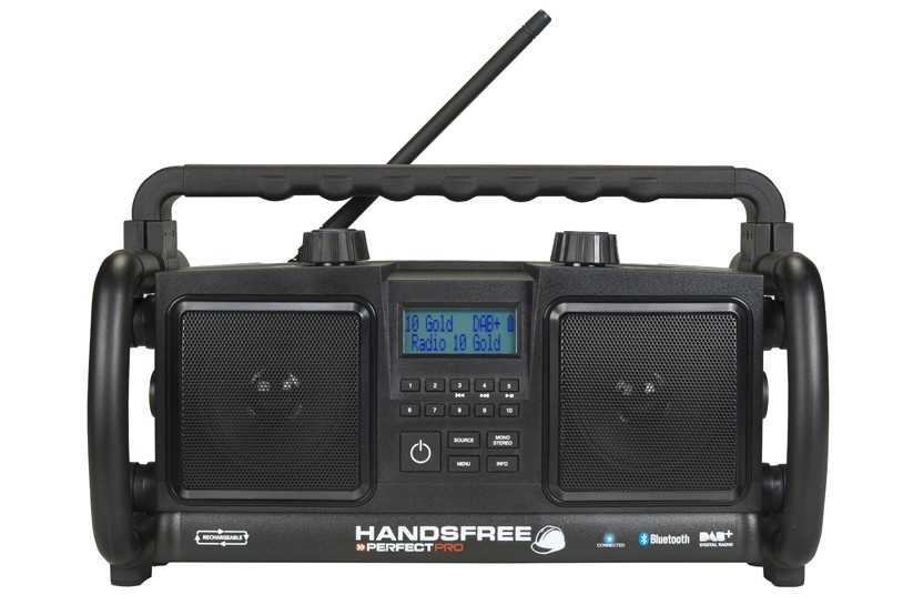 Perfectpro HANDSFREE. Radiotyp: Tragbar, Tunertyp: Digital, Unterstützte Bänder: DAB+,FM. RMS-Leistung: 10 W. Subwoofer-Treiberdurchmesser (imperial): 10,2 cm (4 Zoll). Display-Typ: LED, Farbe der Hintergrundbeleuchtung: Blau. Bluetooth-Profile: A2DP,AVRCP,HFP