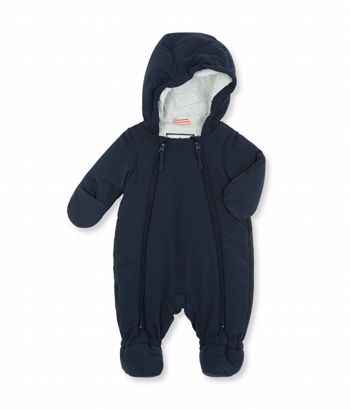 Der Baby-Schneeanzug für Mädchen und Jungen ist mit Jerseystrick gefüttert und vorne mit einem doppelten Verschluss versehen, um das An- und Ausziehen zu erleichtern. Dieses Basic von Petit Bateau ist sehr bequem und hält schön warm und sollte deshalb im Winter bei keinem Baby fehlen.