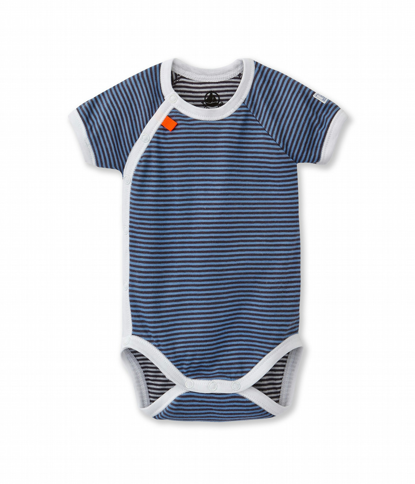 Dieser Baby Jungen Body für Neugeborene, hergestellt aus Strickgarn in Ringelstreifen auf beiden Seiten, hat kurze Ärmel und läßt sich einfach mit Druckknöpfen auf der Seite und zwischen den Beinen zum Wechseln der Windeln, öffnen. Ein Body der unentbehrlich ist für die Ausstattung von neugeborenen Babys. Material: 100% Baumwolle