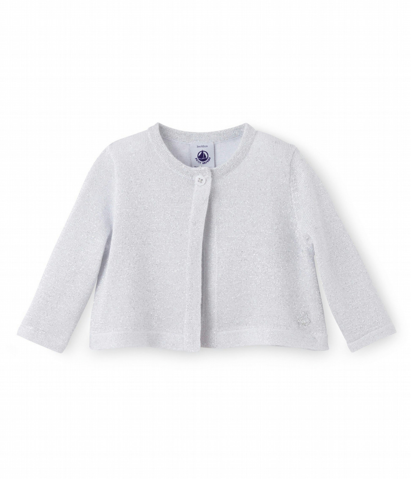 Diese Baby Mädchen Bolero Strickjacke ist aus reiner Baumwolle und Lurex für die glänzenden Betonungen, die sie nochmehr verschönern, hergestellt. Die kleine Strickjacke hat eine A-Linien Schnitt und ist zauberhaft mit dem kleinen Maschen. Sie läßt sich kinderleicht mit einem Knopf schließen. Material: 100% Baumwolle; 64% Polyester, 36% Metalfaden