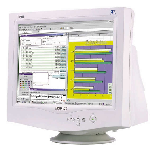 Philips 107T Retail. Type: Shadow Mask CRT, Vertical scan range: 50 - 160 Hz, Horizontal scan range: 30 - 71 kHz. Display resolution: 1280 x 1024 pixels. Dimensions (WxDxH): 397 x 424 x 383 mm