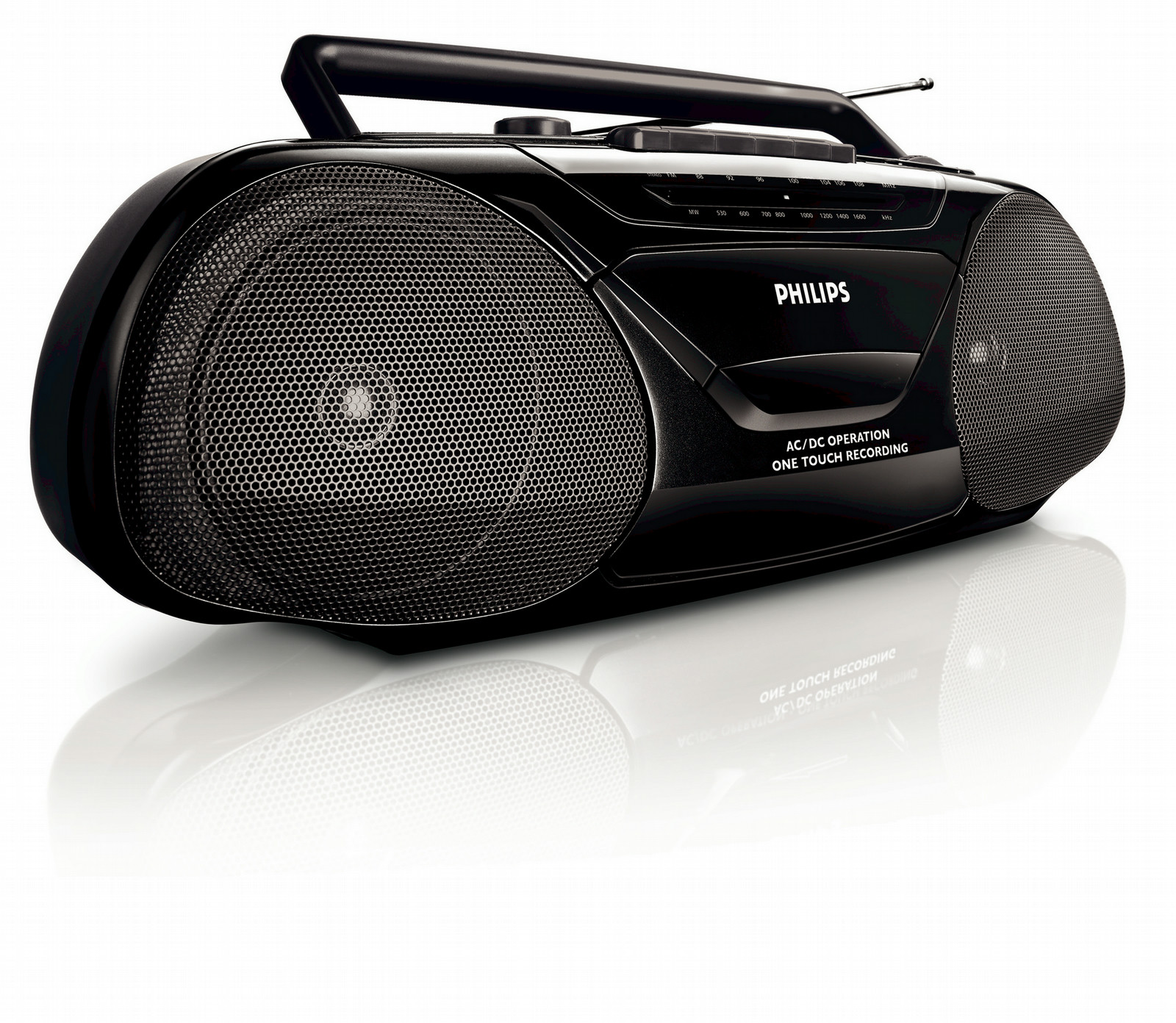 Enjoy music on the go with the Philips radio cassette recorder, featuring a cassette deck