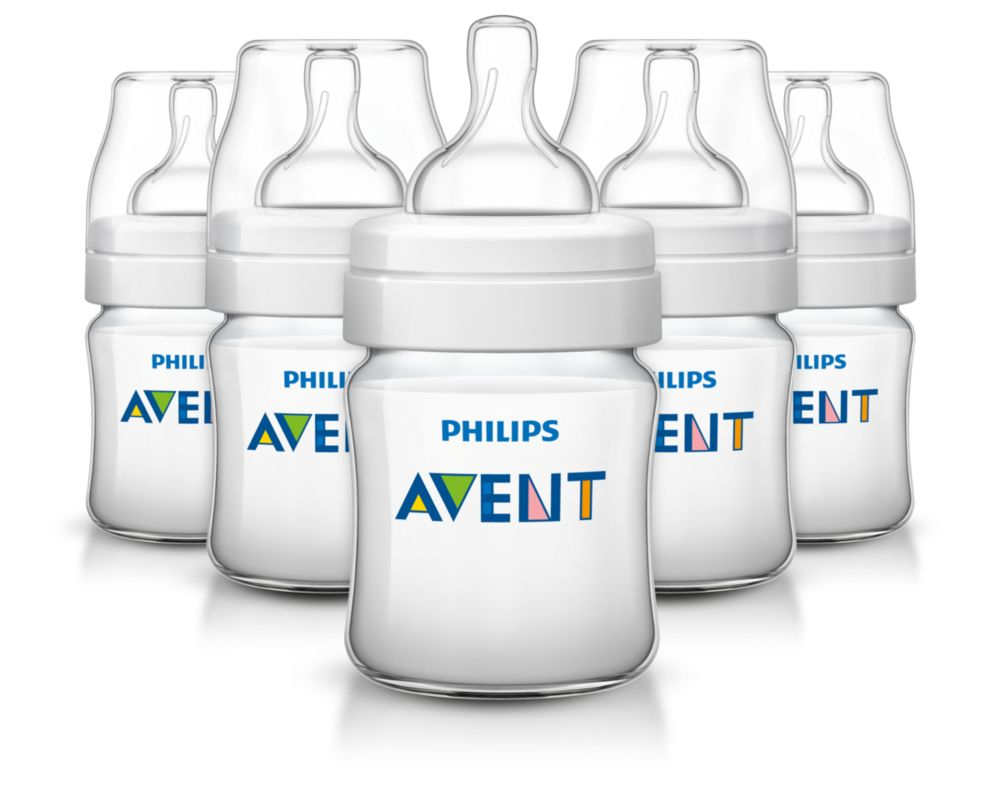 * At 2 weeks of age, babies fed with a Philips Avent bottle showed a trend to less colic than babies fed with a conventional bottle. At 2 weeks of age, babies fed with a Philips Avent bottle showed a trend to less fussing than babies fed with another leading bottle.
