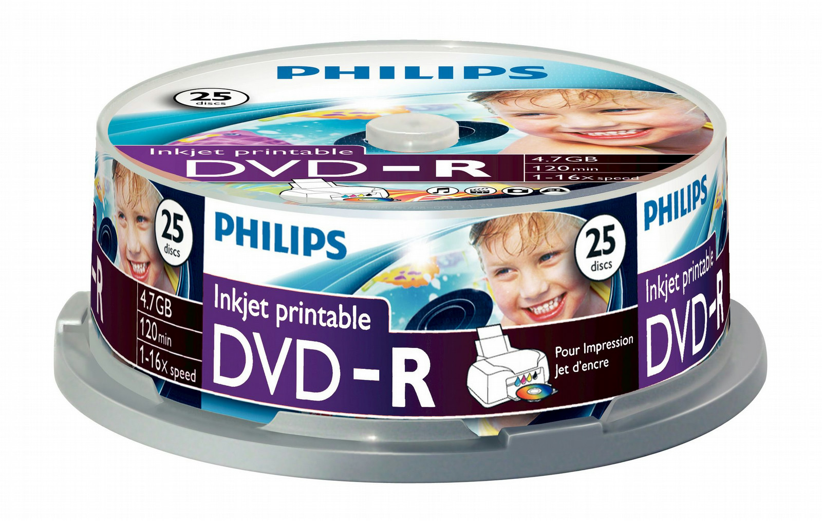 Philips offers a range of inkjet printable recordable media that allow the creation of full color labels directly onto a white coating on top of the disc. The disc is fed through a suitable printer, delivering vivid colorful results.